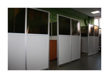 Компания-производитель предлагаетмобильные офисные перегородки с комбинированным заполнением(сочетание глухого и прозрачного материалов). Глухоезаполнение: ЛДСП, МДФ, ДВПО в 2 слоя (для радиусных перегородок). Прозрачное заполнение: сырое / закаленное стекло, поликарбонат.
