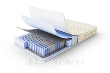 ортопедическая пена - 1,5 см; термовойлок; блок независимых пружин - 13 см; термовойлок; ортопедическая пена - 1,5 см;