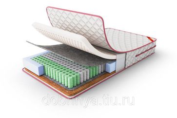 латекс натуральный - 5 см; термовойлок; блок независимых пружин; термовойлок; кокосовая койра латексированная - 3 см;