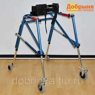 представляет собой комплексное устройство, обеспечивающее поэтапность реабилитации; рама - складная, изготовлена из алюминия с цветным анодированным покрытием; ходунки снабжены мягкими нескользящими ручками; передние колеса - диаметр 12 см с фиксацией поворотного механизма; задние колеса - диаметр 12 см с храповым механизмом; ходунки регулируются по высоте с шагом 2,5 см; оснащены стабилизатором для спины с фиксирующим ремнем безопасности; в комплекте поддерживающие трусики; выпускается в трех модификациях (размерах), модели: 1200, 2200, 3200; гарантия 1 год.