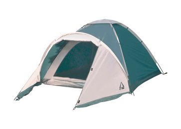 Легкая и недорогая однослойная палатка, рассчитанная на трех человек. Подойдет для непродолжительных походов без экстремальных погодных условий. Площадь тамбура 1,4 м2. Вентиляционное отверстие, москитная сетка на входе.