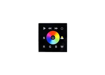 Настенный встраиваемый DMX-контроллер, стеклянная Touch-панель с сенсорным кольцом, раздельная регулировка каналов (4 канала - R,G,B,W), прямой выбор белого холодного, нейтрального, теплого цветов. Выход DMX-512, питание 12-36 В. None