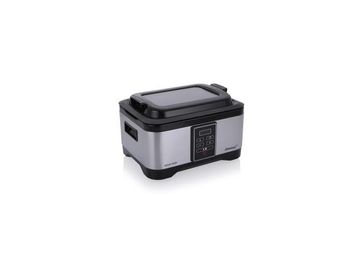 Кухонный прибор для приготовления различных блюд по технологии Sous-Vide. Технология приготовления пищи Sous-Vide характерна низкой температурой обработки продукта, что позволяет сохранять большинство витаминов и минеральных элементов, содержащихся в продукте. При готовке в запечатанном пакете по технологии Sous-Vide так же сохраняется вкус и аромат готовящегося блюда, утрачиваемые при готовке классическими способами. Потребляемая мощность, Вт 550 Цвет Комбинированный Материал корпуса Комбинированный Термостат Есть Звуковой сигнал Нет Чаши для приготовления Количество чаш 1 Суммарный объем чаш, л 6 Материал чаш Алюминиевый сплав чаш Съемная чаша с антипригарным покрытием и шкалой минимального и максимального наполнения Управление Тип управления Электронное Дисплей Есть, Светодиодный цифровой дисплей с индикацией таймера Таймер Есть, до 24-х часов Таймер отсрочки Нет Индикаторы Индикатор включения Есть Система защиты Автоматическое отключение Нет Дополнительные параметры Особенности Корпус из высококачественной нержавеющей сталиЭлектронный контроль температуры (точность до 1°)Простая чисткаПротивоскользящие ножкиСъемный кабель питания Габариты Размеры (В x Ш x Г), см 23 x 37 x 28 Вес, кг 3.5 Принимаем WebMoney, QIWI и Yandex-деньги без %