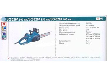 - Пила цепная MAKITA UC3520A (1800Вт, 35см, 3.8кг, автом.смазка) по выгодной цене 4 000 р. руб.;