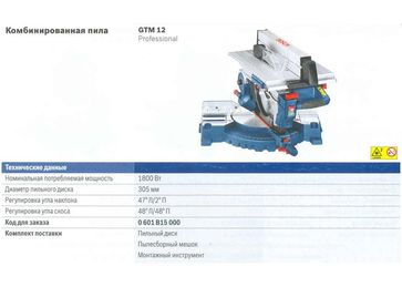 - Пила дисковая BOSCH GTM 12 (0601B15000) (1800Вт, 305мм, 22кг) распиловочный станок по выгодной цене 25 900 р. руб.;