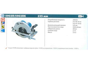 - Пила дисковая MAKITA 5903 RK (2000Вт, 4500об мин, пропил 85мм, 235мм, 7.6кг, кейс) в каталоге Пилы циркулярные в Санкт-Петербурге;
