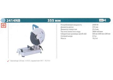 - Пила монтажная MAKITA 2414 NB (2000Вт, пропил 119мм, 355 25.4мм, 16.2кг) по выгодной цене 6 990 р. руб.;