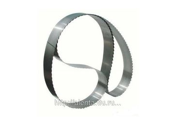 Особенности биметаллических ленточных пил: Высокая твердость режущей части зуба - быстрорежущая сталь М2 (аналог Р6М5) - твердость 66-67 HRC. Основа пилы изготовлена из легированной стали с пружинными свойствами - сталь D6A (аналог сталь 45ХГНМФА) - твердость 44-46 HRC, высокое сопротивление знакопеременным нагрузкам. Ленточная пила полностью закаленная. Импортное сырье, лицензионная технология, тотальный инструментальный контроль качества гарантируют высокие стабильные качества инструмента. БЛП одинаково хорошо работают на любых породах древесины (мягких, твердых, экзотических), как зимой, так и летом. По сравнению с углеродистыми биметаллические ленточные пилы обеспечивают: - Более высокую точность реза; - Более высокую чистоту обработки; - Максимальные подачи (от 8 м/мин) и скорости резания от 28м/с; - Наработку на отказ от 45-50 м. куб. древесины. - Значительно снижают затраты на обслуживание пилы (заточка, разводка ).