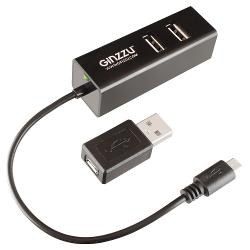 концентратор USB 2.0 Ginzzu GR-564UB на 3 порта OTG, картридер SD microSD