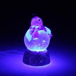 USB Снеговичок-Толстячок Orient, малиновый шарф, наполнен жидкостью с блесками, многоцветная подсветка, питание от USB (NY6010)