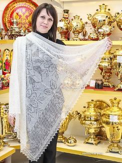 - Пуховый оренбургский ажурный платок экрю, арт. А110-02 в каталоге Платки в Санкт-Петербурге;