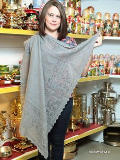 Закажите Пуховый оренбургский платок серый, арт. П4-100-03 у компании Тульские самовары в Санкт-Петербурге на портале Alloy: