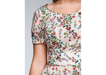 Одежда марки DDShop предназначена для девушек с большой грудью. В DDShop нестандартная размерная линейка: размер одежды (в т.ч. платья, блузки, жакеты, пальто) - это размер груди по бюстгальтеру. Например, если в размере указано 75E/75F, значит данная вещь садится на девушку с размером бюстгальтера 75E и 75F. При этом данные размеры соответствуют следующим параметрам талии и бёдер:70C, 70D, 70E, 70F - обхват талии 65см, обхват бедер 90 см75C, 75D, 75E, 75F - обхват талии 70см, обхват бедер 95 см80C, 80D, 80E, 80F - обхват талии 75см, обхват бедер 100 см85C, 85D, 85E, 85F - обхват талии 80см, обхват бедер 105 смОщутите восхищенные взгляды окружающих в прелестном цветочном платье, выполненном из легкого натурального хлопка. Платье с округлым вырезом и коротким рукавом. Изделие имеет застежку-потайную молнию сбоку, также широкий втачной пояс, прекрасно подчеркивающий вашу талию.