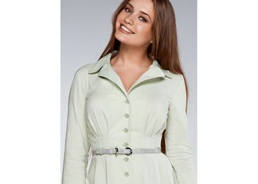 Одежда марки DDShop предназначена для девушек с большой грудью. В DDShop нестандартная размерная линейка: размер одежды (в т.ч. платья, блузки, жакеты, пальто) - это размер груди по бюстгальтеру. Например, если в размере указано 75E/75F, значит данная вещь садится на девушку с размером бюстгальтера 75E и 75F. При этом данные размеры соответствуют следующим параметрам талии и бёдер:70C, 70D, 70E, 70F - обхват талии 65см, обхват бедер 90 см75C, 75D, 75E, 75F - обхват талии 70см, обхват бедер 95 см80C, 80D, 80E, 80F - обхват талии 75см, обхват бедер 100 см85C, 85D, 85E, 85F - обхват талии 80см, обхват бедер 105 смПлатье из эластичного хлопка в мелкую салатовую полоску — стильное и элегантное. Нежный салатовый цвет создает настроение свежести и весны. Застежка на пуговицы, отложной воротник с лацканами, удобные карманы в швах. В этой модели использованы лекала одной из самых удачных моделей DDshop, пользовавшейся особой любовью наших клиенток.