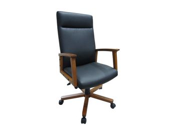 Конструкция: Механизм качания с регулировкой под вес и фиксацией в вертикальном положении Регулировка высоты (газлифт) Подлокотники и крестовина отделаны натуральным деревом Цвет дерева: Орех Обивка: Искусственная кожа Ограничение по весу: 120 кг