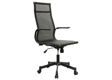 Кресло руководителя современного дизайна Конструкция: Механизм качания с регулировкой под вес и фиксацией в вертикальном положении Регулировка высоты (газлифт) Черный металлический каркас, крестовина и подлокотники (с накладками из искусственной кожи) Обивка: Сетчатая ткань Ограничение по весу: 120 кг Упаковка: