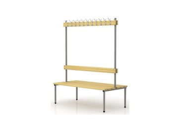 (цена указана без учета сборки, доставки и такелажа) Вешалка двухсторонняя со скамьей, 22 крючка, сидение сосна (доска). В стандартном исполнении доска покрывается антисептиком на водной основе (Premia). Цвет антисептика — бесцветно-прозрачный. Возможно дополнительное лаковое покрытие доски — 5% от стоимости изделия /на заказ/. Используемые материалы: сталь с полимерным покрытием сидение — сосна (доска) None Есть доставка.