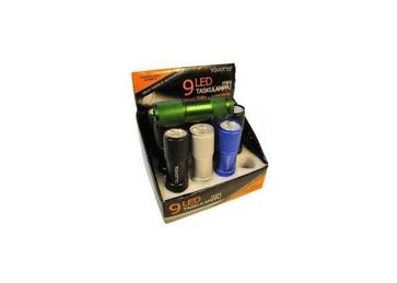 В фонаре 9 светодиодных ламп. Высокая мощность при малом размере. Работает 3 х 1,5 В батарейки AAA. Алюминиевый корпус.