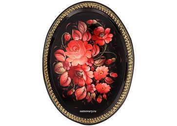 Закажите Поднос с художественной росписью "Красный букет", овальный, арт. 9114 у компании Тульские самовары в Санкт-Петербурге на портале Alloy: