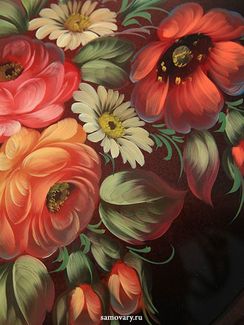 Закажите Поднос Жостово "Цветы на бордовом фоне" диаметр 32 см, арт. А-8.13 у компании Тульские самовары в Санкт-Петербурге на портале Alloy: