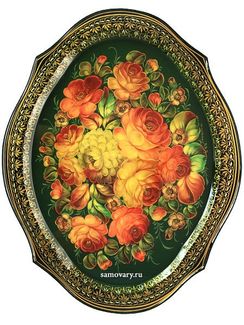 Закажите Поднос Жостово "Цветы на зеленом фоне" 37*47 см, арт. А-3.11 у компании Тульские самовары в Санкт-Петербурге на портале Alloy: