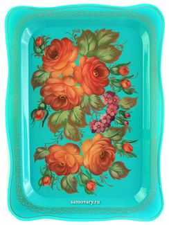 - Поднос Жостово "Розы на бирюзовом фоне" 28*38 см с фигурными краями, арт. А-7.47 в каталоге Подносы в Санкт-Петербурге;