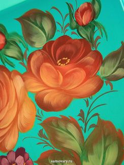 Закажите Поднос Жостово "Розы на бирюзовом фоне" 28*38 см с фигурными краями, арт. А-7.47 у компании Тульские самовары в Санкт-Петербурге на портале Alloy: