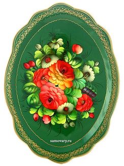 - Поднос Жостово с художественной росписью "Букет цветов на зеленом фоне", овальный, арт. 2148 по выгодной цене 2 849 р. руб.;