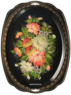- Поднос Жостово с художественной росписью "Цветы", овал с фигурным краем, арт. 2120 по выгодной цене 2 090 р. руб.;