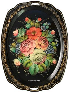 - Поднос Жостово с художественной росписью "Нежные цветы", овал с фигурным краем, арт. 8167 по выгодной цене 2 090 р. руб.;