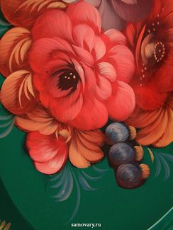 - Поднос Жостово с росписью "Красный букет на зеленом фоне", овальный малый, арт. 2043 в каталоге Подносы в Санкт-Петербурге;