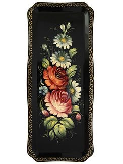 - Жостовский поднос с художественной росписью "Цветы на черном фоне", прямоугольный малый, арт. 4016 по выгодной цене 1 490 р. руб.;
