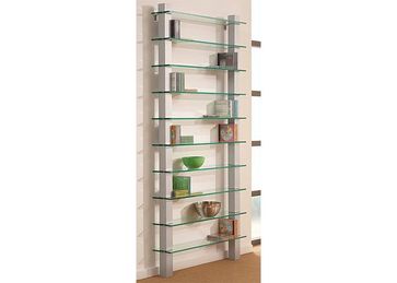 Полка для DVD дисков на 352 штук, высота 203 см, 9 полок, материал полок - прозрачное стекло, стойки (круглые)- алюминий None