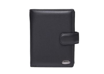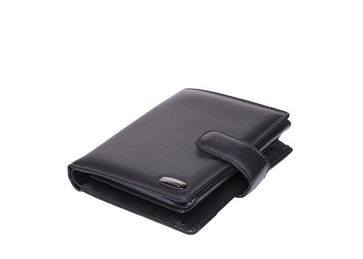 Описание- Портмоне вертикальное на кнопке из натуральной кожи. Внутри 2 отделения для купюр, 1 потайное отделение на молнии, карман для мелочи на кнопке, 9 карманов для кредитных карт. Дополнительно отделение для вкладыша под автодокументы, скрытое на кнопке.