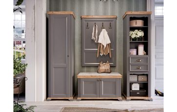 Прихожая «Амели 3» - представительница популярного сегодня стиля, известного как «французский кантри» или «Прованс». За счет дизайна, продуманного до мелочей, «Амели» украсит Ваш дом, привнесет в него тепло, уют и гармонию, которые будут встречать Вас и Ваших гостей уже с порога. Мягкий цвет прихожей «Серый Оникс», в сочетании с древесным цветом «Дуб Тортуга», делают прихожую нестандартной, авторской, а композиция будет идеально смотреться даже в небольшой прихожей. Настенное зеркало, украшенное карнизом, идеально дополнит прихожую и визуально расширит пространство. Открытая вешалка – это отличная альтернатива громоздким шкафам. Она компактна, и в тоже время позволяет разместить одежду всей семьи. Благодаря тумбе с мягким пуфом, можно присесть, когда обуваетесь или снимаете обувь. Это очень удобно. Ящики на шариковых направляющих бокового крепления и петли с доводчиками добавят удобства в использовании, а прихожая будет долго служить и радовать удобством и красотой.