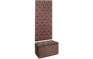 Прихожая Мишель 750 шоколад создаст неповторимый интерьер в прихожей комнате. Обивка велюр. Вешалка снабжена 3я рожковыми крючками для одежды. Пуф с мягким сиденьем и ящиком для хранения. Состав набора: