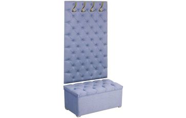 Прихожая Мишель 950 голубой создаст неповторимый интерьер в прихожей комнате. Обивка велюр. Вешалка снабжена 4я рожковыми крючками для одежды. Пуф с мягким сиденьем и ящиком для хранения. Состав набора: