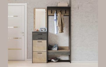 Трувор прихожая 1 Дуб Гранж Песочный/Интра - оригинальный комплект мебели для прихожей комнаты. Конструкция с открытой вешалкой для верхней одежды. Исполнение в комбинированной расцветке. Состав комплекта: