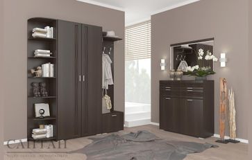 шкаф двухдверный ШК-814 (916х358х2152), угловой стеллаж УМ-601 (358х358х2152), вешалка В-805 (556х358х2152), тумба ТБ-804 (1112х358х1069), зеркало З-802 (705х1112).