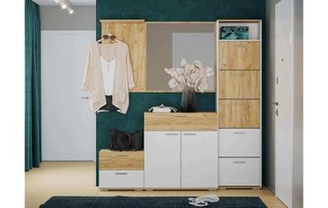 Прихожая Санти-3 Белый/Дуб крафт золотой поможет создать комфорт в интерьере современной прихожей комнаты.