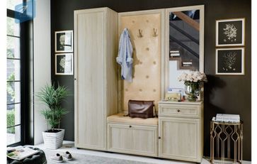 Модульная прихожая Оскар-7А — выполнена в традиционном английском стиле. Модули данной серии мебели изготовлены из ЛДСП, фасады Рамка МДФ+вставка ЛДСП, вешалка и тумба для обуви украшены экокожей. Фурнитура выполнена в цвете Состаренная бронза. Благодаря наличию различных модулей можно подобрать набор мебели, максимально подходящий размерам вашей прихожей и соответствующий вашим вкусам. Набор мебели украсит вашу квартиру, позволит разместить все необходимые вещи: одежду, обувь и аксессуары.