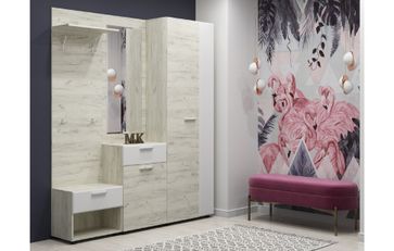Модульная прихожая Сафари — выполнена в современном выдержанном европейском стиле. Прихожая обладает элегантным дизайном, сочетающим изысканность цвета и фактур корпуса и фасадов. Вместительные тумбы с выдвижными ящиками позволяют хранить как обувь, так и десятки необходимых мелочей. Большое зеркало с фацетом, по периметру, позволит не упустить ничего в своей внешности перед выходом из дома. А емкий шкаф вместит всю необходимую одежду. В составе комплекта: •Шкаф ШК-001 (680х350х2072); •Тумба ТМ-002 (545х350х2072); •Тумба ТМ-003 (545х350х2072).
