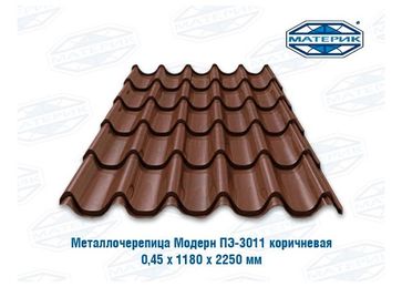 - Металлочерепица Модерн ПЭ-8017 0,4х1180х2250мм коричневый по выгодной цене 555 р. руб.;