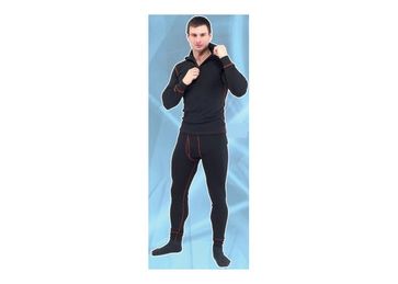 Термобелье изготовлено из мериносовой шерсти в сочетании с полиакрилонитриловыми волокнами Protex-М, которые являются неотъемлемой частью продукта предназначенного для защиты от огня, тепла и электрической дугиТермобелье из шерсти и Protex-М соответствует Европейским стандартам EN 531, B1, C1 (защита от тепла и пламени), ENV 50354-1 от электродуги класса I/4kA/500ms.Материал: 70% шерсть мериноса, 30% Protex-М. None