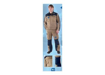 Спецодежда летняя для защиты от общепромышленных загрязнений. Используется при проведении монтажных работ. Куртка с застежкой на молнию, закрытую планкой. С накладными нагрудными карманами , в том числе карман для телефона и с боковыми карманами с клапанами. Накладной карман на рукаве. Ширина изделия и рукава регулируются патами. Полукомбинезон с центральной застежкой-молнией, с бретелями. Нагрудные накладные карманы. Передние, задние и боковые карманы. Наколенники для вкладышей. Цвет: хаки/темно-синий, серый/синий.Ткань верха: «Томбой» смесовая (67% полиэфир, 33% хлопок), 245 г/кв.м. None