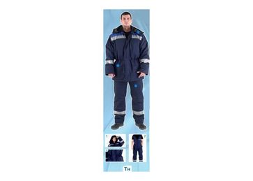 Спецодежда зимняя для защиты от общепромышленных загрязнений.Куртка утепленная с застежкой на молнию и планкой. Кулиска по талии. Боковые накладные карманы с клапанами. Внутренний карман. Воротник – стойка из трикотажного полотна. Рукава с муфтами из трикотажа. Съемный утепленный капюшон. Утеплитель – 2 слоя.Полукомбинезон: утепленный с центральной застежкой на молнию. Нагрудный и два передних кармана с наклонным входом. Эластичная тесьма по линии талии для удобства . Утеплитель 1 слой.Ткань верха: смесовая (67% ПЭ, 33% ХЛ).Утеплитель: синтепон, 150 г/кв.м.Световозвращающий материал: полосы 3M™ шириной 5 см. None