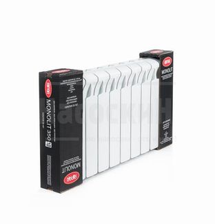 Биметаллический радиатор RIFAR Monolit 350 - 11 секций Биметаллический радиатор RIFAR Monolit 350 - 11 секций, это идеальное решение для квартир и загородных домов. Купить радиатор отопления для дома или дачи Вы можете в нашем магазине. Какую батарею отопления выбрать подскажут наши специалисты, оказав грамотную консультацию по подбору, необходимого именно Вам, оборудования. Радиаторы RIFAR имеют широкую линейку, с которой Вы можете ознакомиться у нас на сайте. Купить секции радиаторов rifar Вы можете по телефонам: 8(495)669-39-99 или 8(800)555-12-82 или приехав в один из наших магазинов в Москве или Санкт-Петербурге. В наших шоурумах представлены отопители, обогреватели воздуха, любые аксессуары Внешне похожий на обычные биметаллические и алюминиевые секционные радиаторы, радиатор MONOLIT отличается от них тем, что внутри него теплоноситель движется по стальным каналам, соединенным с помощью уникальной технологии сварки в единую неразборную конструкцию. Благодаря этому в радиаторе MONOLIT в принципе отсутствуют участки, потенциально опасные для возникновения протечек. Радиаторы MONOLIT обладают исключительной надежностью, а также высокой теплоотдачей, которая достигается за счет развитой геометрии теплопередающих поверхностей из алюминиевого сплава. Конструкция и технология изготовления биметаллического радиатора отопления MONOLIT обеспечивают: Долговечность эксплуатации. Гарантия производителя — 25 лет. Эффективность поддержания комфортного температурного режима. Высокую стойкость к коррозии. Каналы, по которым проходит теплоноситель, сделаны из стали повышенной коррозионной стойкости, а их толщина соответствует толщине обычных стальных водопроводных труб. Отсутствие межсекционных стыков. Индифферентность к типу теплоносителя и качеству его подготовки в системах индивидуального и коллективного отопления. Возможность использования в качестве теплоносителя различных незамерзающих жидкостей. Возможность использования радиатора при высокой (до 135 °С) тем