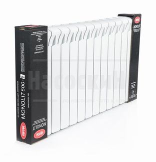 Биметаллический радиатор RIFAR Monolit 500 - 14 секций Биметаллический радиатор RIFAR Monolit 500 - 14 секций, это идеальное решение для квартир и загородных домов. Купить радиатор отопления для дома или дачи Вы можете в нашем магазине. Какую батарею отопления выбрать подскажут наши специалисты, оказав грамотную консультацию по подбору, необходимого именно Вам, оборудования. Радиаторы RIFAR имеют широкую линейку, с которой Вы можете ознакомиться у нас на сайте. Купить секции радиаторов rifar Вы можете по телефонам: 8(495)669-39-99 или 8(800)555-12-82 или приехав в один из наших магазинов в Москве или Санкт-Петербурге. В наших шоурумах представлены отопители, обогреватели воздуха, любые аксессуары Внешне похожий на обычные биметаллические и алюминиевые секционные радиаторы, радиатор MONOLIT отличается от них тем, что внутри него теплоноситель движется по стальным каналам, соединенным с помощью уникальной технологии сварки в единую неразборную конструкцию. Благодаря этому в радиаторе MONOLIT в принципе отсутствуют участки, потенциально опасные для возникновения протечек. Радиаторы MONOLIT обладают исключительной надежностью, а также высокой теплоотдачей, которая достигается за счет развитой геометрии теплопередающих поверхностей из алюминиевого сплава. Конструкция и технология изготовления биметаллического радиатора отопления MONOLIT обеспечивают: Долговечность эксплуатации. Гарантия производителя — 25 лет. Эффективность поддержания комфортного температурного режима. Высокую стойкость к коррозии. Каналы, по которым проходит теплоноситель, сделаны из стали повышенной коррозионной стойкости, а их толщина соответствует толщине обычных стальных водопроводных труб. Отсутствие межсекционных стыков. Индифферентность к типу теплоносителя и качеству его подготовки в системах индивидуального и коллективного отопления. Возможность использования в качестве теплоносителя различных незамерзающих жидкостей. Возможность использования радиатора при высокой (до 135 °С) тем