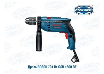- Электродрель Бош | Bosch 701Вт артGSB 1600 RE по выгодной цене 3 179 р. руб.;