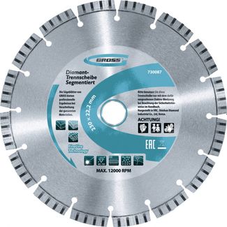 - Диск алмазный ф230х22,2мм, тонкий, сплошной, мокрое резание Gross по выгодной цене 1 649 р. руб.;